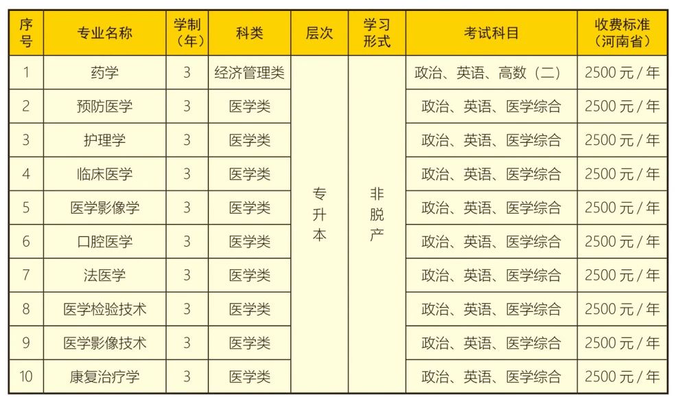 2025年原新乡医学院招生专业目录(招生代码:393)