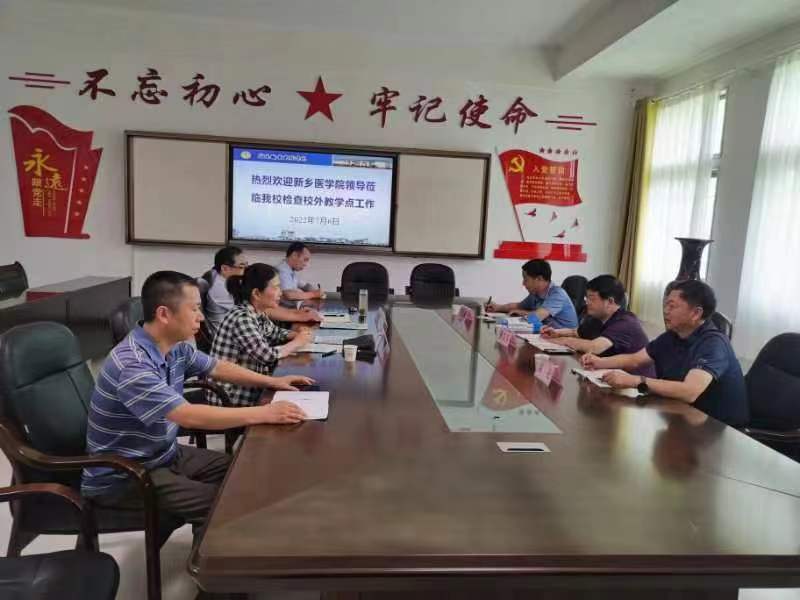 2022年7月6日,新乡医学院继续教育学院党总支书记董志厚、副院长侯亮、教务科长付克朝一行3人莅临beat365检查指导医学本科高等学历教育校外教学点工作。学校副校长李新毓及继续教育学院人员陪同检查。