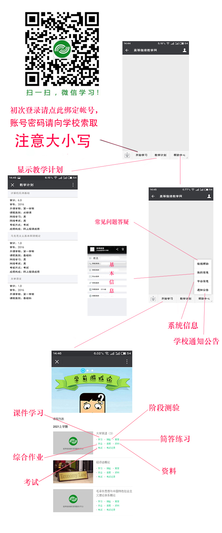 4.教学活动暂采用线上进行,请学员登录北联大学习平台,按照平台提示流程进行。课程设置,教学计划,课件信息,阶段检测,期末考试等教学活动均在网上进行。