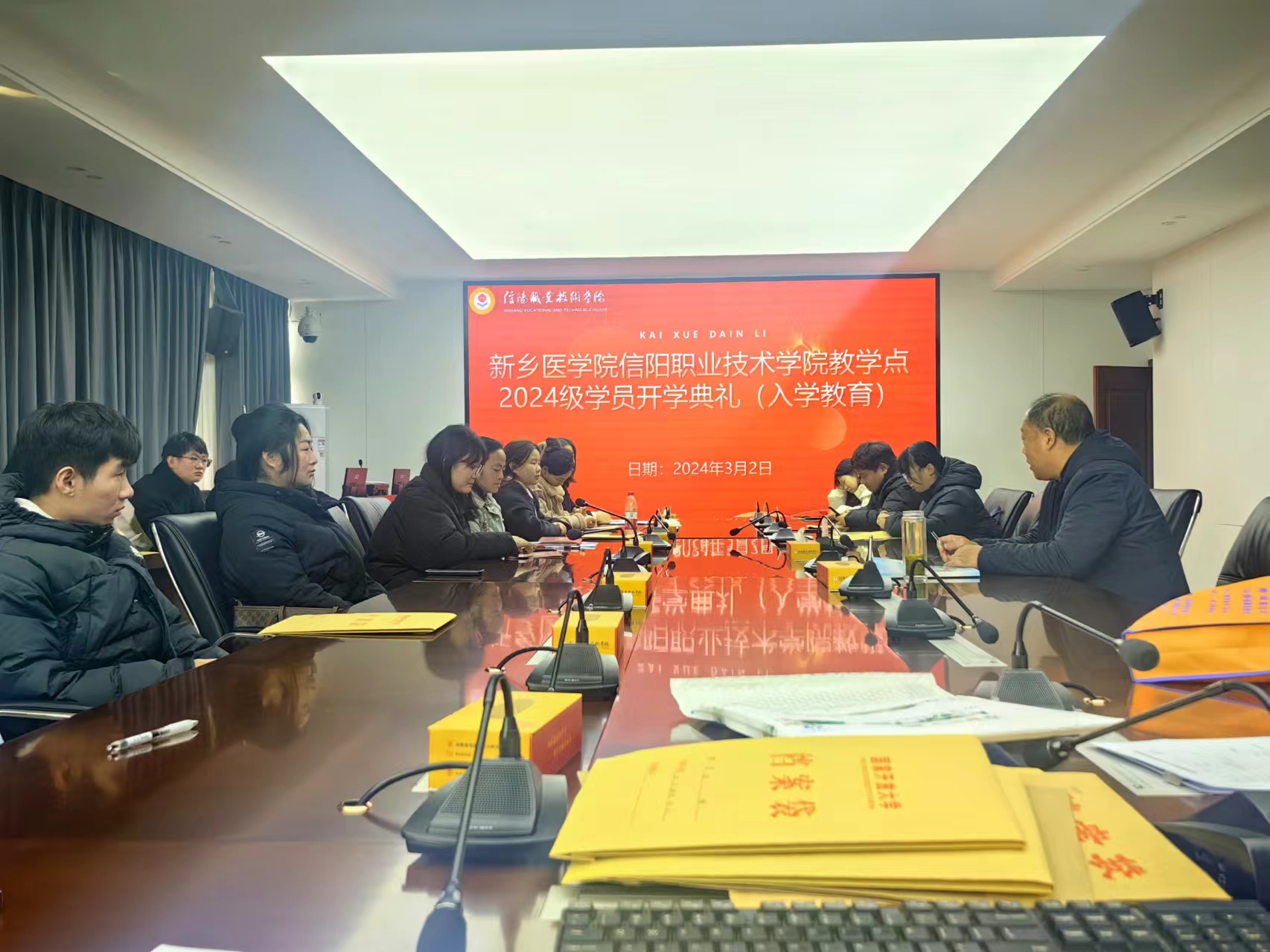 3月2日,新乡医学院信阳教学点2024级学员开学典礼在beat365英国官方网站学管楼二楼大会议室隆重进行,来自豫南地区(信阳、驻马店)50余名学员参加开学典礼。学院院长柯楠出席开学典礼并讲话。