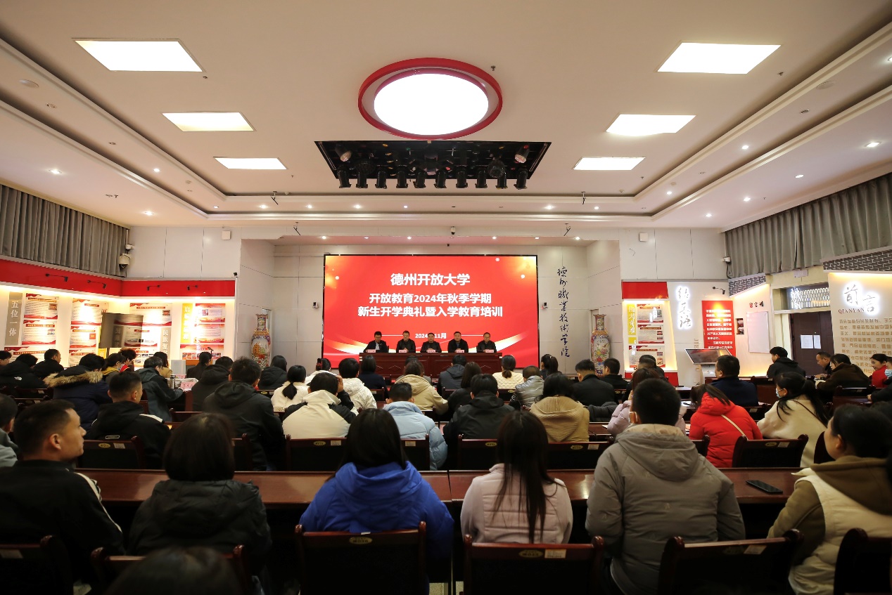 11月22日,德州开放大学开放教育2024年秋季学期新生开学典礼暨入学教育培训在学校思齐楼二楼多功能厅举行。市总工会党组成员、工人文化宫主任侯骞,市教育局四级调研员、职业教育与民继教育科科长周涛,德城区总工会党组副书记、副主席冯军,开云kaiyun官方网站(德州开放大学)党总支书记杨欣鸿出席活动,活动由开云kaiyun官方网站(德州开放大学)成人学历教育科科长刘庆主持。德州开放大学直属部2024年秋季全体新生及班主任参加活动,共同开启“圆梦”之旅。