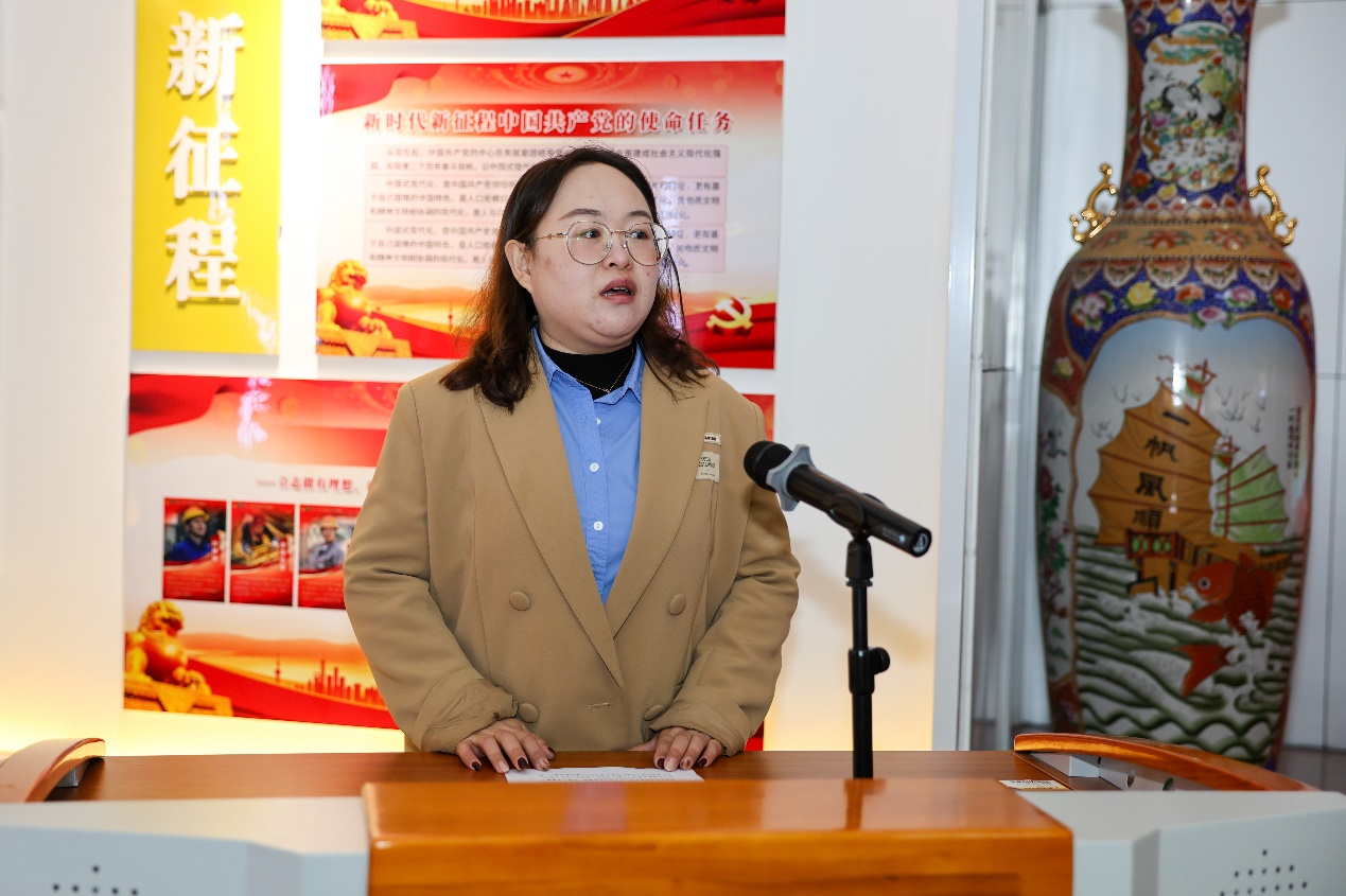 新生代表谢文彩发言,她汇报了入学以来的学习收获,分享了自己的学习体验和感悟,鼓舞全体新同学坚定刻苦学习并努力成为德州开大优秀学子的决心。