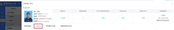 如个别考生因环境因素或者原始照片问题导致身份核验未通过,须提交主考进行审批。主考审批前,监考教师须留存备查带有考试时间和考场地址的考生与监考教师在考场考位的合影(使用“水印相机”App拍摄开考30分钟时整个考场的全景水印照片,须带有考试时间和考场地址,保证考生清晰可见,并标记出应急考生);然后主考登录“身份核验APP”或者“一平台”考试模块,在【考风考纪】—【巡考过程管理】—【考生签到】页面进行审批操作,审批通过后考生可入场考试。
