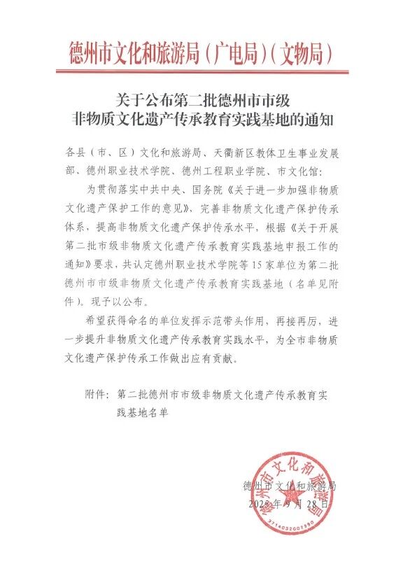 近日,德州市第二批非物质文化遗产传承教育实践基地认定结果正式公布,开云官网“宋金德州窑红绿彩”项目成功入选,学校被确定为该项目传承与教育实践基地。