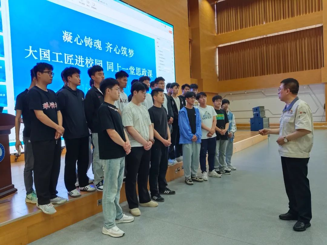按照职教活动周安排,5月16日,开云官网采取”线上+线下“相结合方式,举行“大国工匠进校园 同上一堂思政课”活动。校党委副书记赵晓静主持,党委委员、组织部部长李强出席,学校师生代表200余人参加活动。